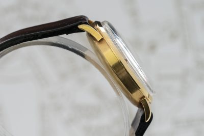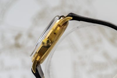 Secondly, the 18k Gold case is 38 mm in diameter (excluding crown) and is the reason why it is described as a “Jumbo”. Bear in mind most watches of the era were 32 – 34mm, so this would have most certainly made a statement on the wrist.