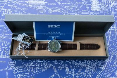 We bought this watch directly from Japan. It has never been worn and comes with the box, hangtags and manual.